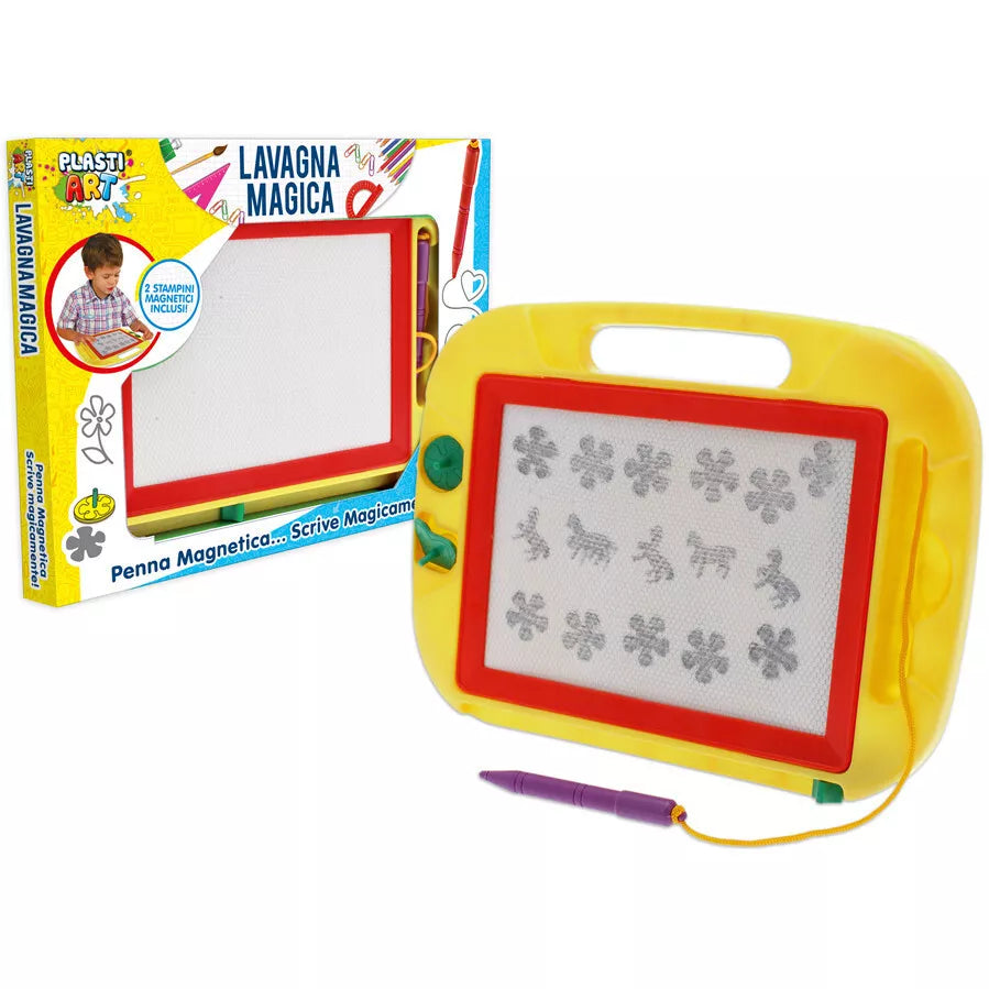 L'ideale per i più piccoli, questa lavagna magica di 43x37 cm è dotata di una penna e 2 timbrini, perfetti per stimolare la creatività e l'apprendimento. Con una superficie facile da cancellare, i bambini potranno disegnare, scrivere e imparare senza alcun disordine. Goditi ore di divertimento educativo con la LAVAGNA MAGICA!