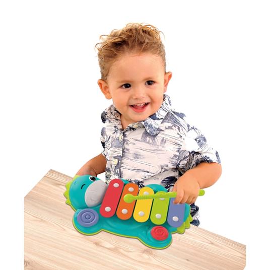 Xylo Dino - Baby Clementoni è un giocattolo educativo con un design simpatico e colorato. Aiuta il tuo bambino a sviluppare le sue abilità musicali e manuali, mentre si diverte a suonare. Realizzato con materiali di alta qualità, sicuro e durevole.